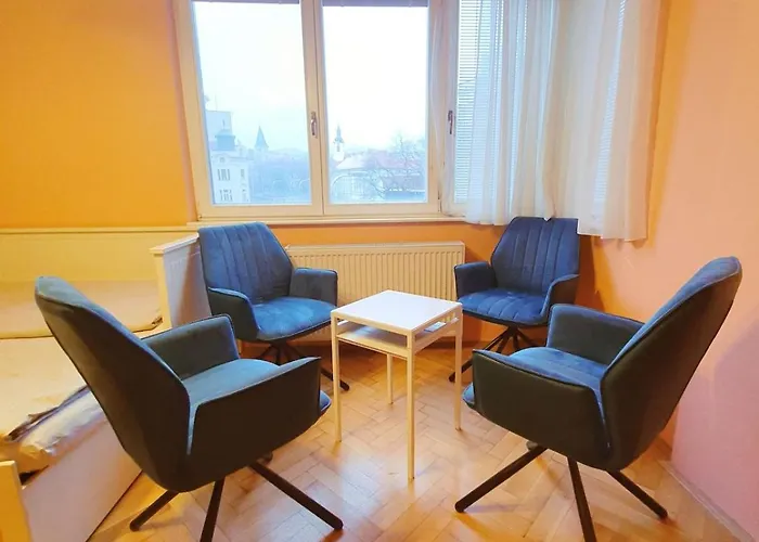 Az apartman olyan önellátó helyiségeket foglal magába, mint az elektromos vízforralóval, hűtővel és konyhai edényekkel felszerelt teljesen felszerelt konyha. A Safarikovo nam buszmegálló 450 méterre fekszik. Van napozóterasz, egy hely a kikapcsolódáshoz.